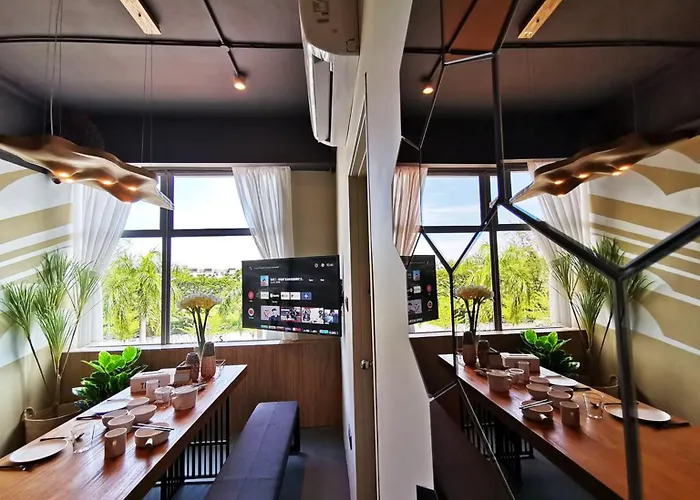 Er wordt dagelijks een gratis ontbijt geserveerd. Oikos Poshtel hostel is gunstig gelegen op een paar stappen verwijderd van Ferdinand's, waar je kunt genieten van Europese gerechten, en Five Sails, gespecialiseerd in de Aziatische keuken, ligt op wandelafstand van 5 minuten. Deze woning beschikt over een gedeelde keuken, beschikbaar om te koken. Handige eetgelegenheden voor gasten zijn ook onderscheidende bezorgassistentie. Het busstation Wawasan Plaza bevindt zich op 950 meter verderop. Oikos Poshtel hostel biedt autoverhuur.